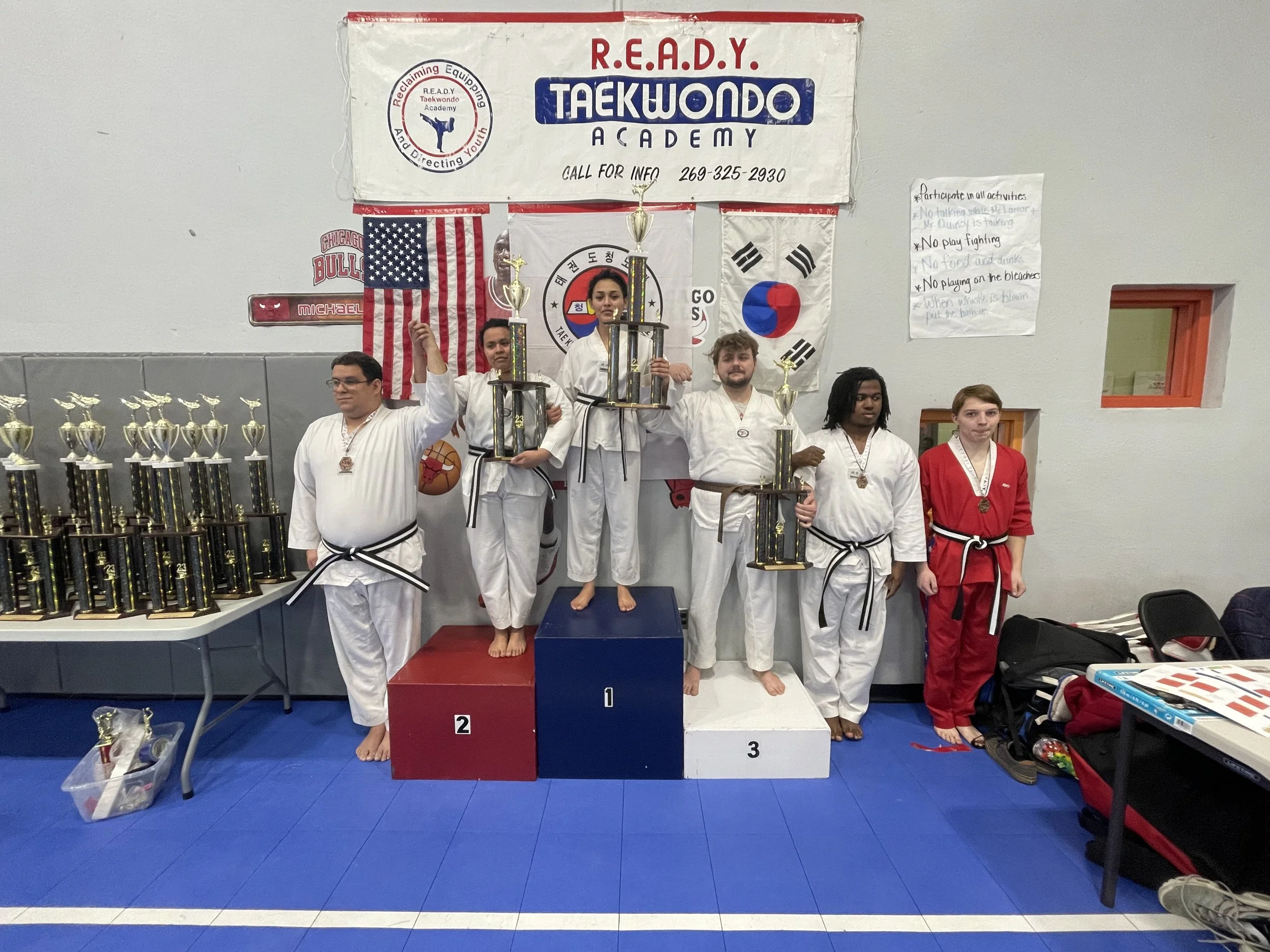 The academic impact of R.E.A.D.Y. Taekwondo was recently documented in Ms. Carla Howe’s fifth grade class at the MLK Academy in Benton Harbor. Over the winter of 2010/2011, Ms. Howe’s class saw an improvement in grades ranging from 50% up to 82% in a five month period. In addition, disciplinary referrals have dropped by more than 50% from the previous year.